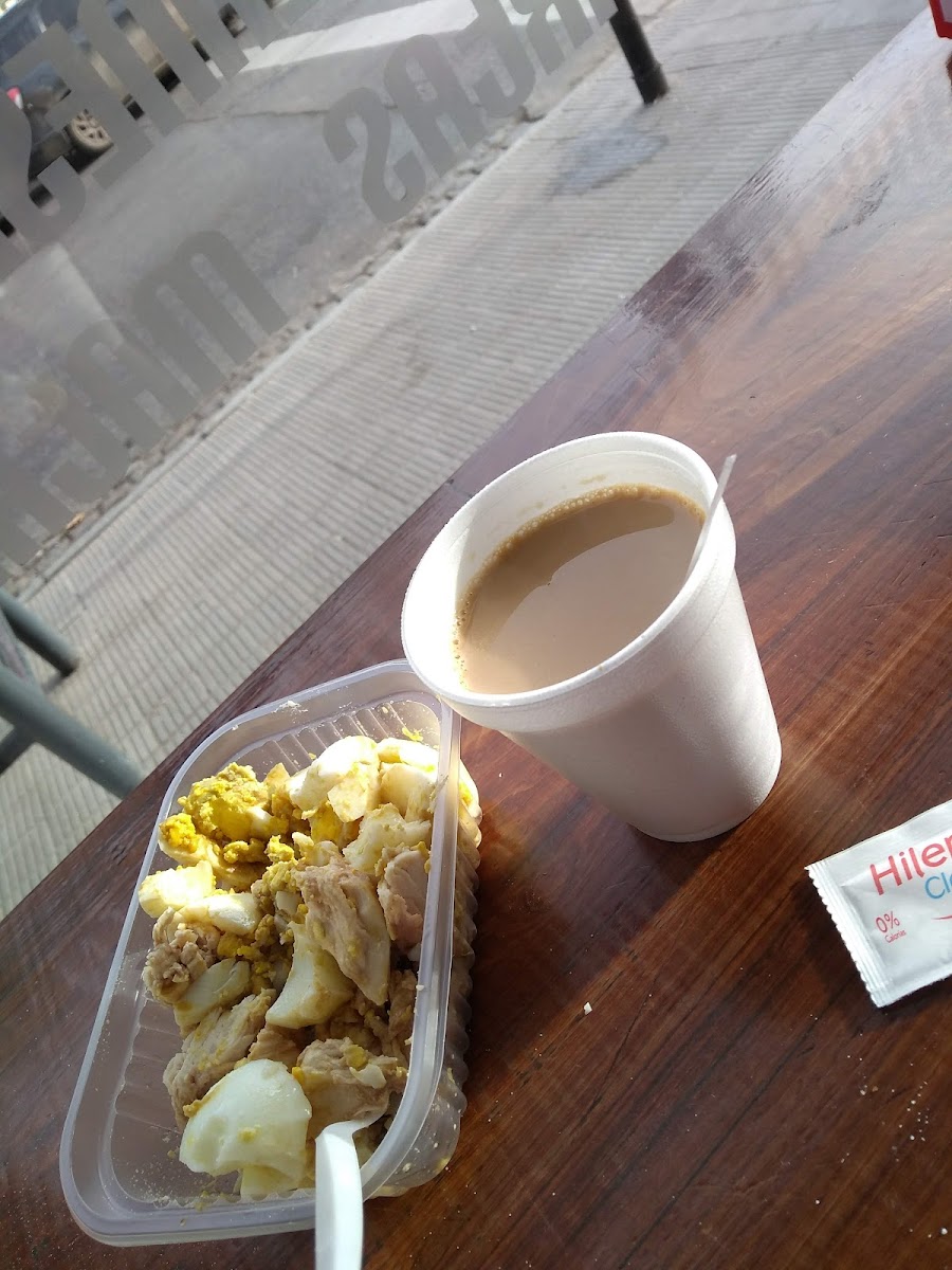 One of the highlights of the menu is the Cafe Con Medialunas, a beloved Argentine breakfast staple. The buttery, flaky medialunas are perfectly paired with a strong, aromatic coffee, making it a great start to the day. Another popular choice is the Pollo Huevo Café Con Leche, combining tender chicken, eggs, and a rich coffee with milk, perfect for a fulfilling breakfast or brunch.